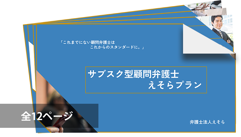 低額なのに相談し放題、新しい顧問弁護士、えそらプランについてのご案内を、PDFでダウンロードできるようにしました。メールアドレスをご記入いただき、ダウンロードボタンをおしてください。