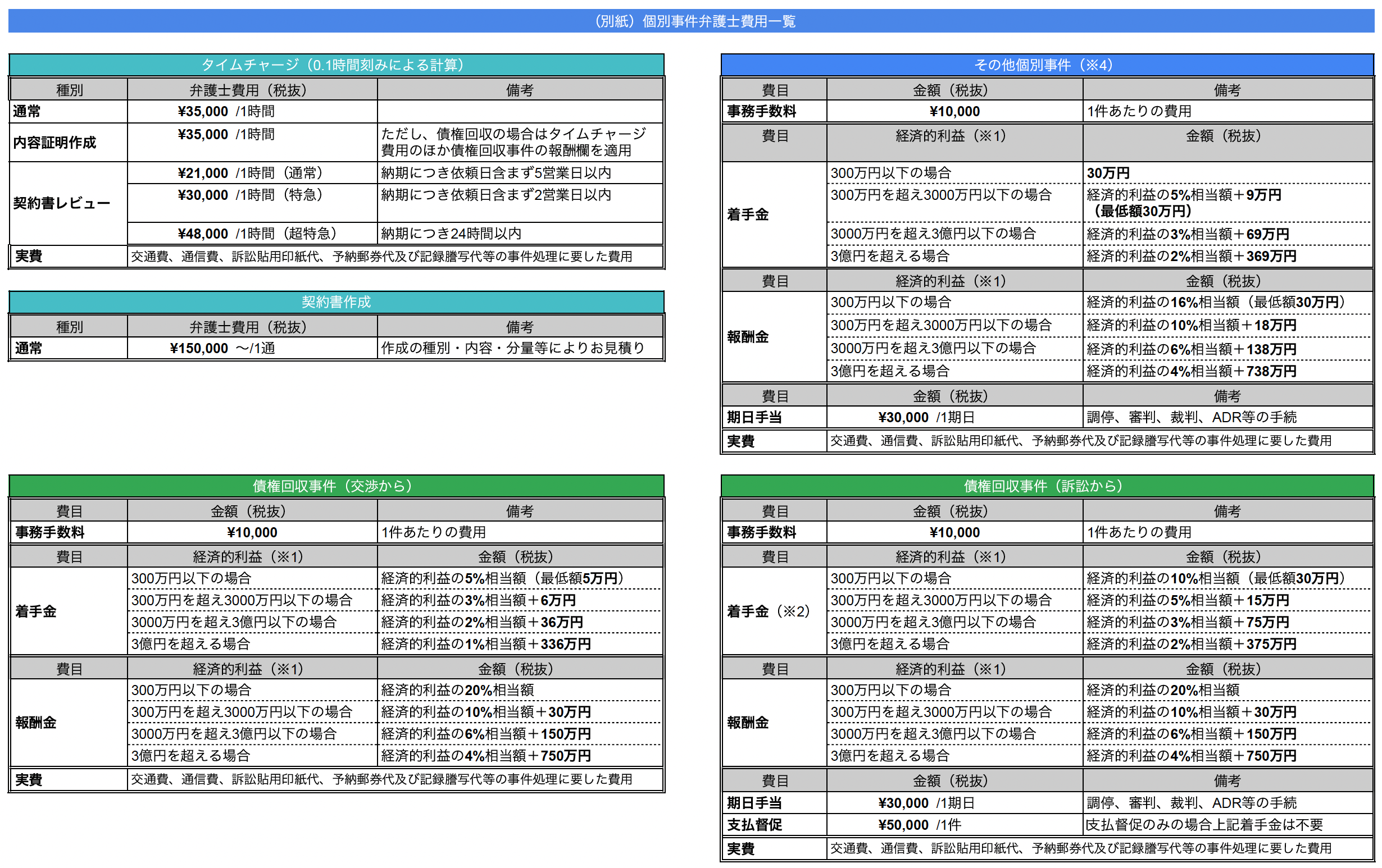 個別事件のご依頼には、通常、契約時に着手金が数十万円以上かかります。例えば、