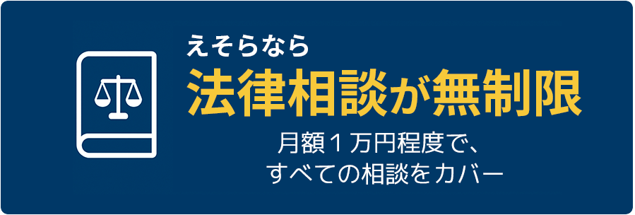 • 着手金無料サービスを利用して個別事件のご依頼をいただいた場合、当該事件終了までえそらプランを解約できません。